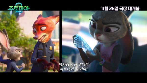 파이널 예고편 공개 이후 팬들은 "무조건 1000만 각! 너무 재밌겠다"(유튜브 Dhs****), "내가 세상에서 제일 좋아하는 토끼와 여우를 극장에서 또 볼 수 있다니~"(유튜브 cc***), "닉 막아주는 주디, 주디 구해주는 닉, 둘이 서로 챙겨주는거 너무 좋다"(유튜브 Jv***), "빨리 보고싶다"(유튜브 KI***), "11월 26일 바로 달려갑니다!!!"(유튜브 엘리***), "너무너무 기대됩니덩"(인스타그램 48***) 등 뜨거운 반응으로 화답하며 더 거대해진 스케일, 더 깊어진 관계, 더 진한 감동으로 돌아온 디즈니 애니메이션의 레전드 콤비 '주디' & '닉'의 컴백을 향한 기대를 전하고 있다.