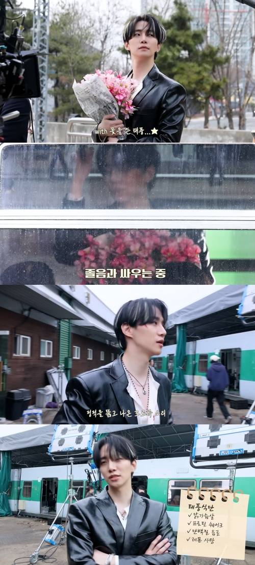 이준호는 tvN 토일드라마 '태풍상사'의 촬영을 위해 아침 일찍 지하철 세트장에서 꽃을 들고 꾸벅꾸벅 조는 장면을 찍었다.