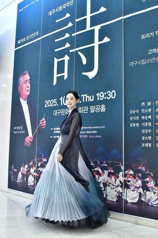 지난 16일 대구문화예술회관에서 열린 대구시립국악단 제218회 정기연주회 ‘시와 함께하는 풍류마당’에 출연해 단아한 한복 자태와 혼신을 다한 노래로 관객의 시선을 사로잡았다.