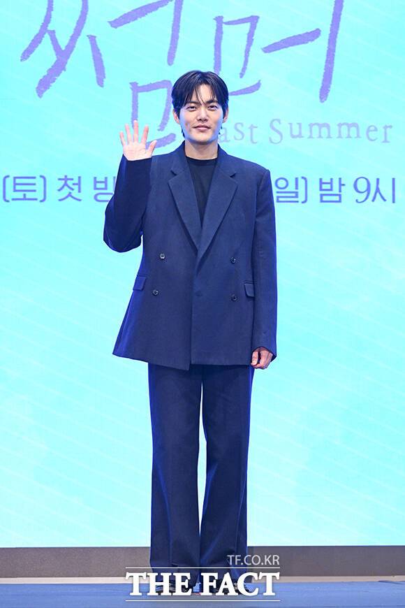 배우 이재욱과 최성은, 김건우(왼쪽부터)가 29일 오후 서울 구로구 신도림 더세인트 그랜드 볼룸에서 열린 KBS2 새 토일 미니시리즈 '마지막 썸머' 제작발표회에 참석해 포즈를 취하고 있다.