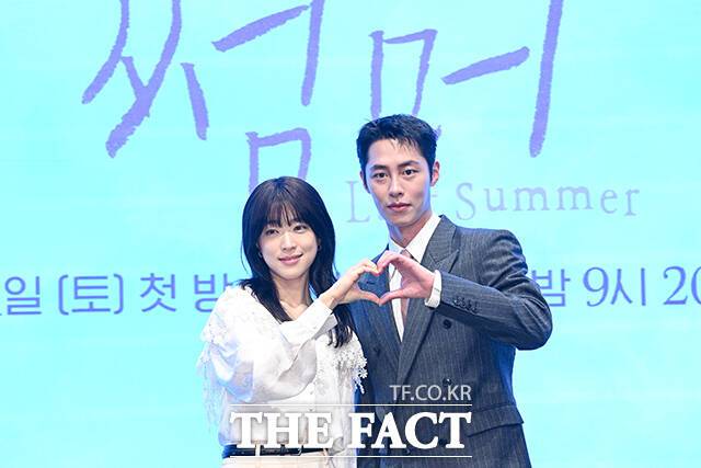 [더팩트ㅣ서예원 기자] 배우 이재욱과 최성은, 김건우(왼쪽부터)가 29일 오후 서울 구로구 신도림 더세인트 그랜드 볼룸에서 열린 KBS2 새 토일 미니시리즈 '마지막 썸머' 제작발표회에 참석해 포즈를 취하고 있다.
