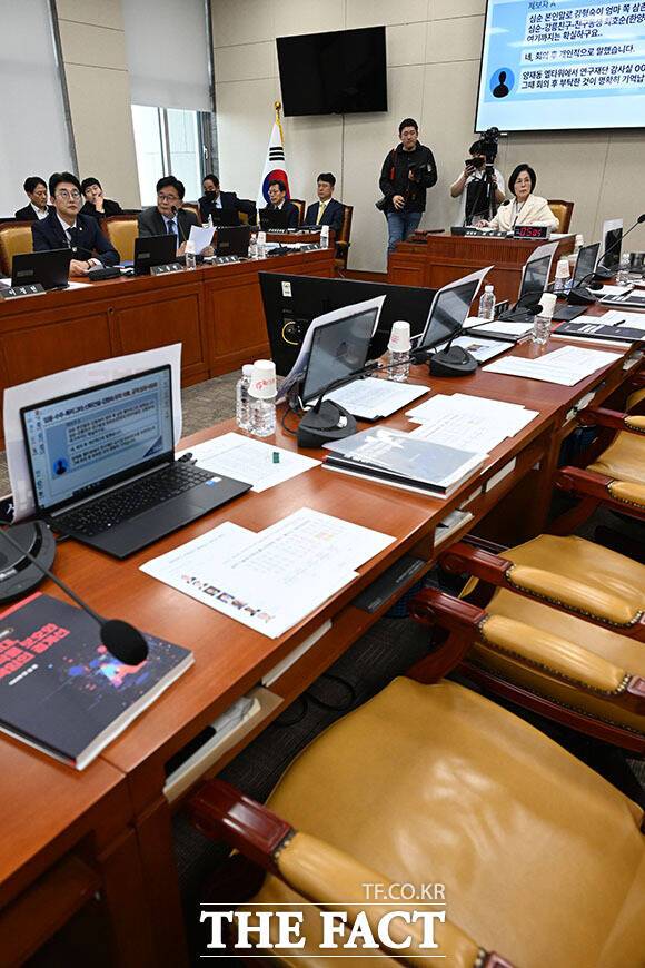 [더팩트ㅣ국회=남용희 기자] 29일 오후 서울 여의도 국회에서 열린 과학기술정보방송통신위원회 과학기술정보통신부 등에 대한 종합감사에서 국민의힘 의원들의 빈자리가 보이고 있다.