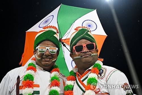 epa12489596 Indian fans show their support during the First Men?s T20I cricket match between Australia and India at Manuka Oval in Canberra, Australia, 29 October 2025. EPA/LUKAS COCH AUSTRALIA AND NEW ZEALAND OUT