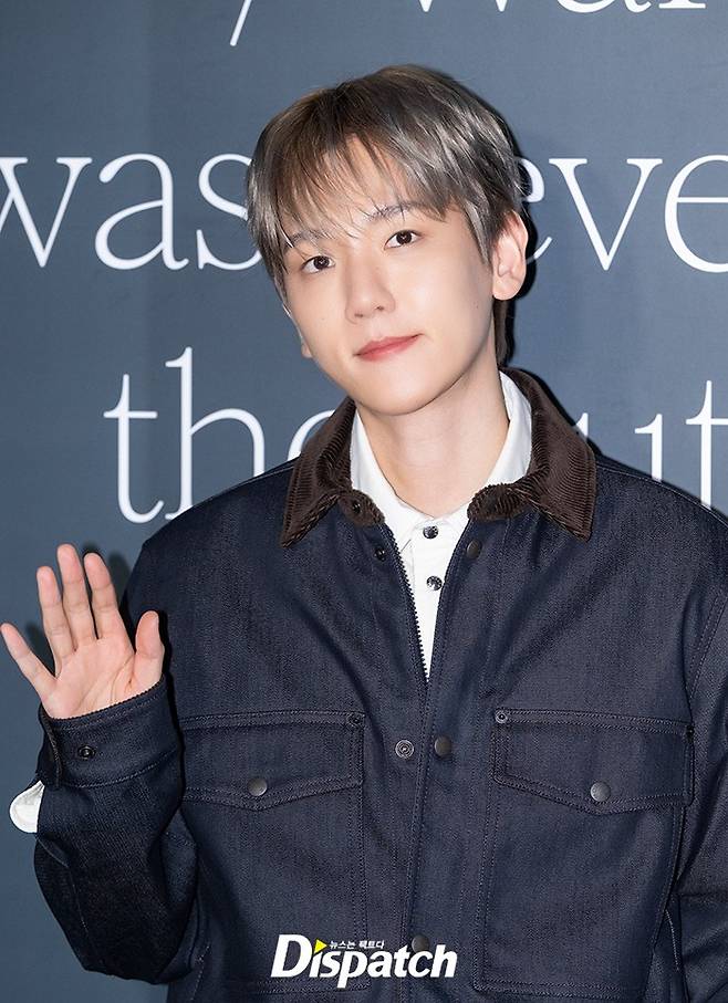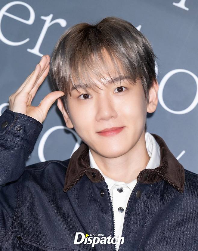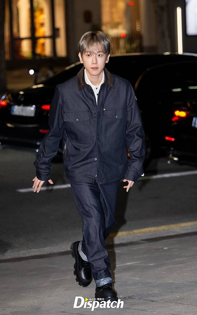 백현은 네이비 컬러 의상으로 심플한 멋을 냈다. 스윗한 미소로 여심을 사로잡았다.