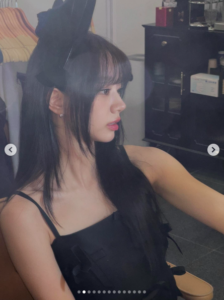 공개된 사진 속 혜리는 블랙 슬립 원피스에 깃털 장식이 돋보이는 헤어밴드를 매치해 우아하면서도 사랑스러운 매력을 발산했다.