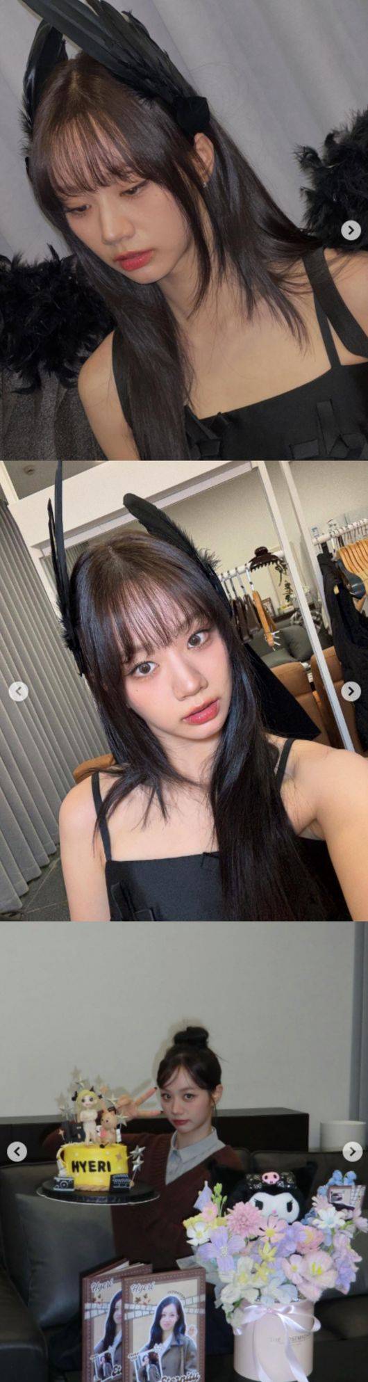 긴 생머리에 자연스러운 메이크업으로 청초한 분위기를 더하며, 데뷔 15년차의 여유와 성숙미를 동시에 자아낸 모습. 이어 머리를 높게 묶어 캐주얼룩을 선보인 혜리는 케이크와 선물 앞에서 볼 하트를 취하며 팬들에 대한 애정을 드러냈다.
