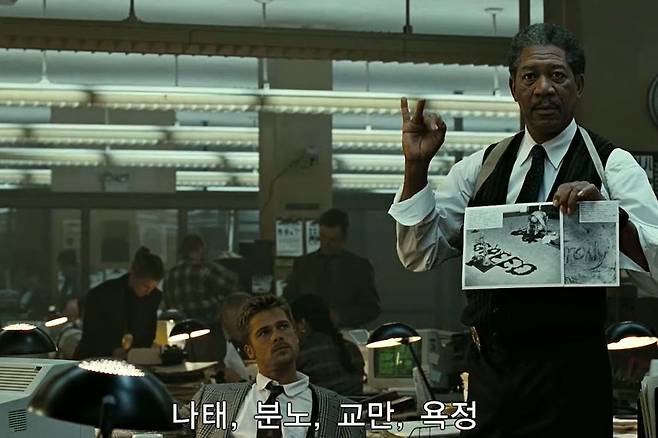 '세븐'은 은퇴를 7일 앞둔 관록의 형사 윌리엄 소머셋(모건 프리먼)과 새로 전근 온 신참 형사 밀스(브래드 피트)가 팀이 된 직후 강압에 의해 죽은 두 남자의 사건과 마주하면서 벌어지는 이야기다. 피해자는 초고도 비만 남성과 악덕 변호사였는데, 윌리엄 소머셋은 이를 보고 성서의 7가지 죄악인 '식탐', '탐욕', '나태', '분노', '교만', '욕정', '시기'를 바탕으로 연쇄 살인이 시작됐음을 직감한다. 이후 치밀하게 짜여진 연쇄 살인이 이어지면서 두 사람은 충격적인 결말에 다다르게 된다.