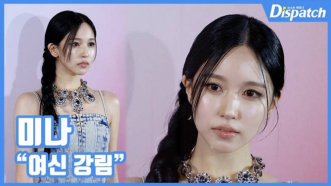 이날 미나는 데님 드레스에 화려한 주얼리를 매치한 세련된 패션 센스로 취재진의 시선을 사로잡았다.
