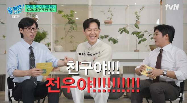 배우 이정재가 시나리오를 쓰고 있는 영화 작품에 유재석을 캐스팅하겠다며 나섰다.