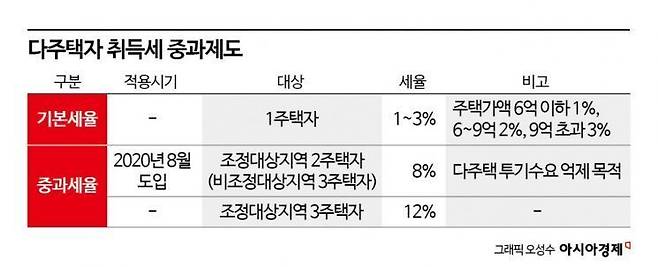 현재 무주택자가 집 한 채를 살 땐 기본 취득세율(1~3%)을 적용받지만 2주택, 3주택 이상 구매 시 세율은 각각 8%와 12%로 높다.