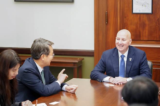 | ▲ 김동연 경기도지사가 30일(현지 시각) 미국 워싱턴D.C.에서 네브래스카 주지사 출신의 피트 리키츠(Pete Ricketts) 상원의원을 만나 미국 상원에 계류 중인 ‘한국 동반자 법안’(Partner with Korea Act)과 관련한 협력을 요청했다. |
