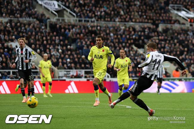 뉴캐슬이 선제골을 뽑아냈다. 전반 24분 토날리가 오른쪽에서 크로스를 감아올렸다. 이를 셰어가 헤더로 연결, 골망을 갈랐다. 토트넘으로선 킨스키가 애매하게 뛰쳐나오려다가 돌아간 게 아쉬움으로 남았다.