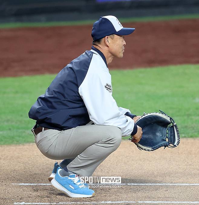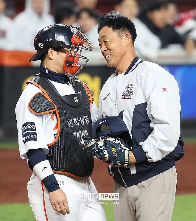시포를 맡은 조경택 코치도 한화 포수 최재훈과 대화를 나누며 긴장을 풀어줬다.