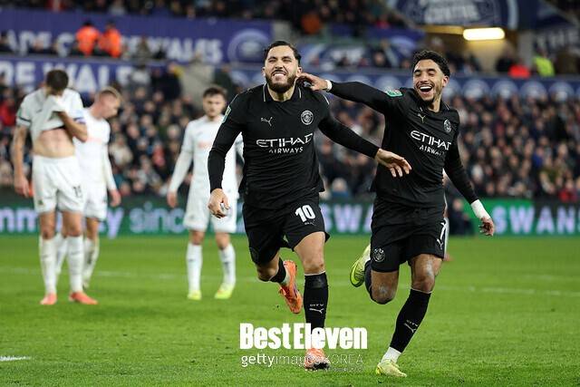 과르디올라 감독이 지휘하는 맨체스터 시티는 30일 새벽(한국 시각) 리버티 스타디움에서 열린 2025-2026 잉글랜드 카라바오컵 4라운드 스완지 시티전에서 3-1로 승리했다. 맨체스터 시티는 전반 39분 제레미 도쿠, 후반 32분 오마르 마르무시, 경기 종료 직전 라얀 셰르키의 연속골로 승리를 거뒀다. 스완지 시티는 전반 12분 곤살로 프랑코의 득점에 그쳤다.