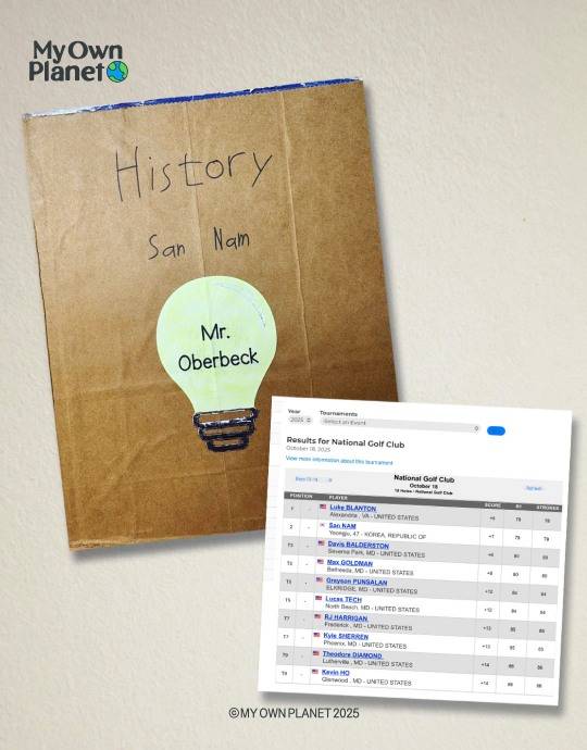 그는 미국 생활을 통해 환경과 기후 행동에 대한 관심을 한층 더 깊게 키우고 있다. 예를 들어, 학교에서는 교재를 재사용(Reuse)하기 위해 임시 커버를 씌워 사용하고, 각종 안내문 역시 종이 대신 이메일로 발송하는 등 실질적인 친환경 실천이 이뤄지고 있다. 이러한 경험은 남산이에게 환경 보호에 대한 더 좋은 실천의식과 동기부여를 주었다. 학업에서도 그는 평균 97점의 우수한 성적을 거두며 미국 교사들로부터 탁월한 학업 태도와 성실성에 대해 높은 평가를 받고 있다.