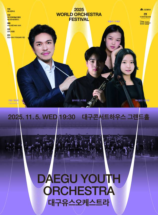 '춤추는 지휘자'로 유명한 백윤학 영남대 교수와 대구를 대표하는 청소년 오케스트라인 '대구유스오케스트라'가 '2025 월드오케스트라페스티벌' 무대에 함께 오른다. 이들의 공연은 오는 11월 5일 오후 7시 30분, 대구콘서트하우스 그랜드홀에서 펼쳐진다.
