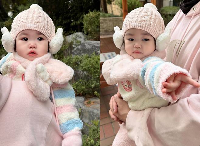 방송인 박수홍·김다예 부부가 딸 재이의 사랑스러운 겨울 패션을 공개했다.