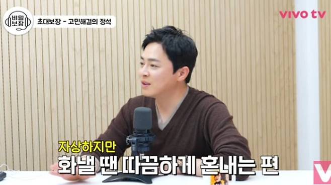 김숙은 “거미 씨 평소엔 화 절대로 안 내죠?”라고 물었고 조정석은 “화 안 낸다”라고 답했다. “화가 난 모습을 본 적이 있느냐”라는 질문에 조정석은 “있다”라고 고백했다. 이에 송은이는 거미가 웬만하면 참고 나긋나긋한 성격이라서 화가 난 게 상상이 안 간다고 털어놨다. 이에 조정석은 “(무엇인가) 잘못했을 때 소리 내거나 화를 내면서 이야기 하지 않고 조곤조곤 정확하게 맞는 말만 하는 편이다. 그러니까 더 무섭고 이성적으로 차분해지는 스타일이다. 제가 무섭게 혼났던 거는 (대리운전해서)집에 왔는데 집 도착 후에 차 뒷좌석에서 잠이 들어버렸던 적이 있다”라며 아내에게 혼이 났던 사연을 언급했다.