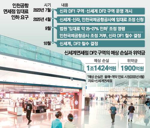 그동안 신세계면세점은 임대료 30% 인하를 주장하며 인천국제공항공사 측과 소송전을 벌여 왔다. 조정 절차에서 인천지방법원이 신세계면세점이 운영하는 인천공항 DF2 구역 매장 객당 임대료를 27.184% 인하하라고 강제 조정 결정을 내렸지만, 공사 측은 이를 받아들이지 않고 곧바로 이의를 제기한 바 있다. 이에 따라 신세계면세점도 해당 사업권을 반납하기로 한 것이다. 신라면세점은 신세계와 같은 이유로 지난달 인천공항 면세점 DF1 구역 사업권을 반납하기로 공식 결정했다. 이후 신라면세점은 불확실성 해소에 따라 주가가 상승하는 모습을 보이기도 했다.