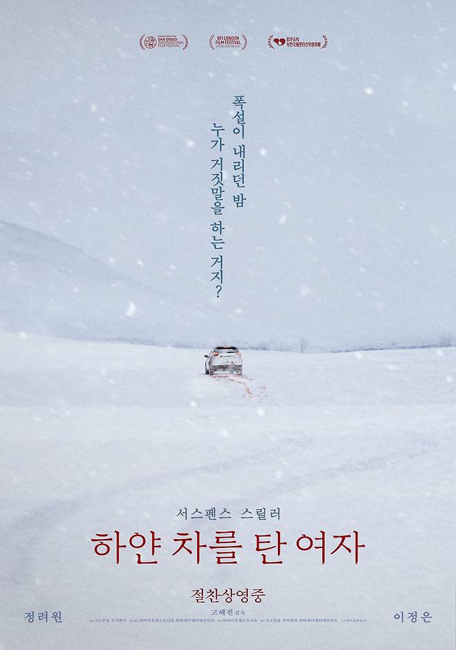 땀을 쥐는 스릴과 무거운 스토리를 원한다면 '하얀 차를 탄 여자'. 영화는 피투성이 언니를 싣고 병원에 온 도경(정려원)이 경찰 현주(이정은)에게 혼란스러운 진술을 하면서 벌어지는 이야기로, 드라마 '마이 유스'의 연출을 맡은 고혜진 감독이 메가폰을 잡았다.