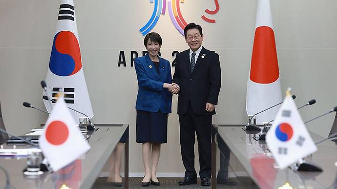 이재명 대통령은 경주에서 아시아태평양경제협력체(APEC) 정상회의를 계기로 방한한 다카이치 사나에 일본 신임 총리와 처음으로 정상회담을 가졌습니다.