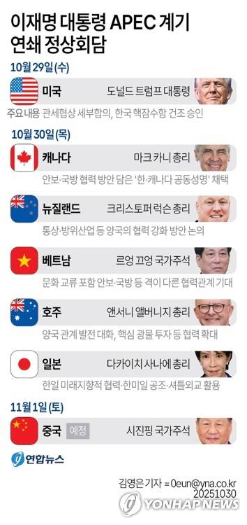 [그래픽] 이재명 대통령 APEC 계기 연쇄 정상회담