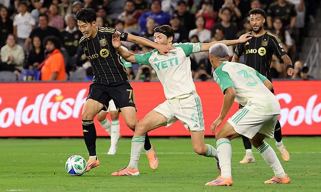 손흥민은 30일 미국 캘리포니아주 LA의 BMO 스타디움에서 열린 오스틴FC와 2025 MLS컵 플레이오프(PO) 서부 콘퍼런스 1라운드(3전2승제) 1차전 홈 경기에 '흥부 듀오' 드니 부앙가와 공격진을 이뤄 선발 출장해 후반 추가 시간까지 뛰고 2-1로 앞선 상황에서 제레미 에보비시로 교체됐다.