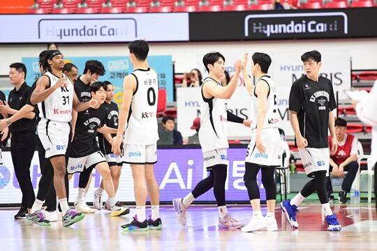 수원 KT는 30일 울산동천체육관에서 열린 2025~2026 LG전자 프로농구 정규리그 경기에서 울산 현대모비스를 76-73으로 꺾었다. 7승 3패로 공동 선두인 안양 정관장-창원 LG(이상 7승 2패)를 반 게임 차로 추격했다.