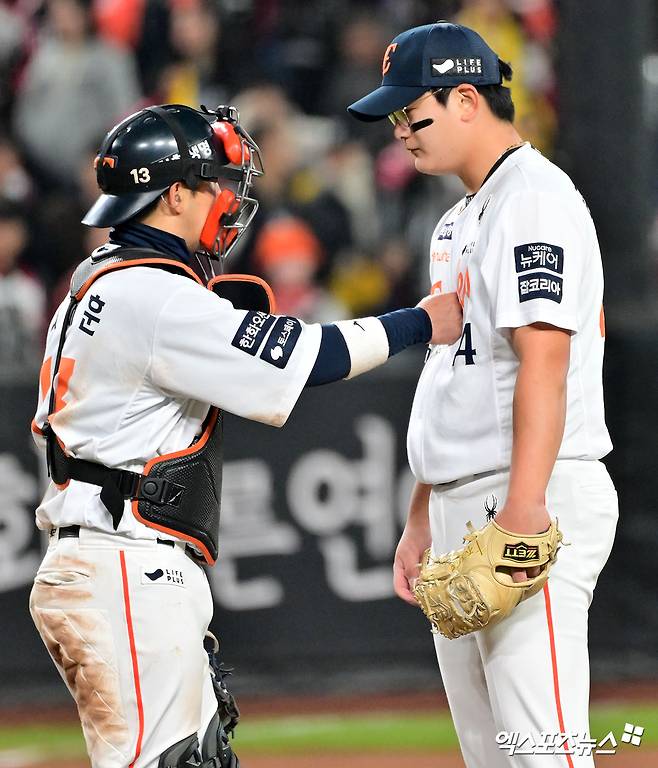 김서현은 전날 3차전에서 승리 투수로 반등을 노렸지만, 4차전 등판에서 한순간 무너지면서 또 쓴맛을 봤다. 9회 승부처에서 제구가 계속 흔들렸지만, 한화 벤치는 한 점 차 1사 1루 상황까지 김서현을 마운드에 놔뒀다.