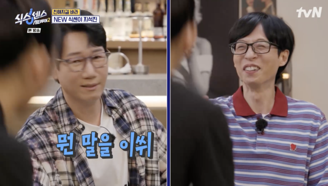 이후 합류한 유재석과 미미. 유재석은 지석진에게 “기가 막히게 빈 자리를 들어왔다”라고 감탄했고, 미미에게 “(지석진의) 합류 소식 듣고 어땠나”라고 물었다. 이에 미미는 “놀랐다. 대선배님이시지 않나. ‘식스센스’가 더 커질라구 그랬나 보다”라고 말했지만, 유재석은 “한마디로 너무 노땅이 들어 왔다는 거 아니냐”라고 일침을 가해 웃음을 자아냈다.