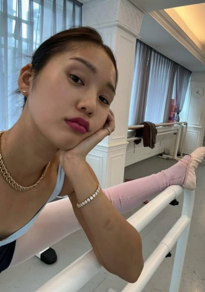 토슈즈를 매거나 발레 동작을 취하는 모습이 담긴 이 사진을 통해 일상 속에서 발레를 즐기는 근황을 전했다.
