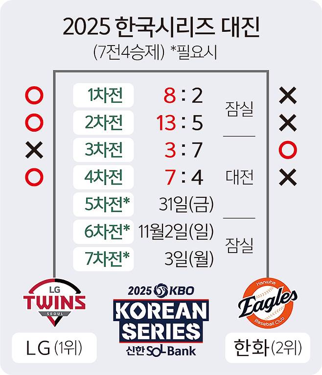 다시 분위기를 추스려야 하는 한화는 5차전 선발로 1차전에 출격했던 문동주를 예고했다. LG 역시 1차전 선발 앤더슨 톨허스트를 내세워 시리즈를 끝낼 각오다.