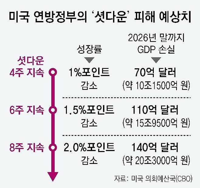 “美 셧다운 장기화땐 성장률 2%P 감소… 회복불능 피해 20조”