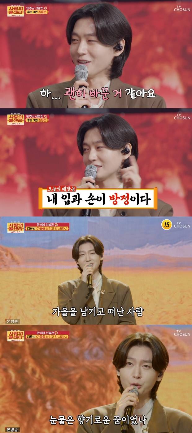 김성주는 김용빈에 대해 "곱디고운 외모와 다른 진한 목소리로 여심을 흔들고 있다"라고 설명했고, 김용빈은 패티김의 '가을을 남기고 간 사랑'을 선곡해 감탄을 자아냈다.