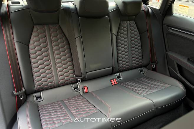 외관은 A3 세단의 균형 잡힌 비율에 RS 라인업 특유의 강렬한 디자인 요소를 더했다. 맨 처음 눈길이 가는 부분은 단연 그릴이다. 한층 더 커졌고 공격적인 인상으로 돌아왔다. 마름모꼴 모양의 촘촘한 블랙 그릴 패턴과 2D 아우디 로고 조합도 신선하게 다가온다. 자연스럽게 이어지는 유광블랙 장식은 범퍼 양 끝으로 향한다. 한 층 넓어 보이는 효과를 주며 당당한 이미지를 전달한다.