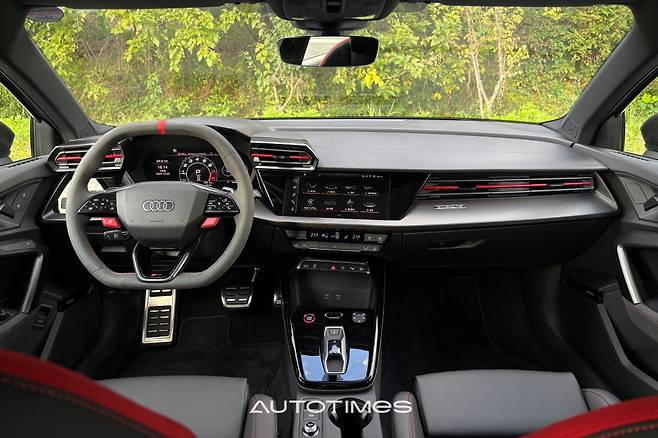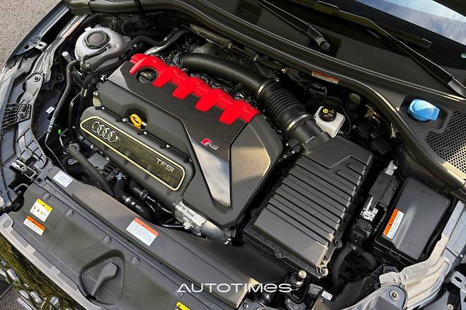 RS3의 핵심은 파워트레인이다. 2.5ℓ 5기통 TFSI 엔진과 7단 S트로닉 자동변속기를 탑재해 최고출력 400마력, 최대토크 50.99㎏∙m을 낸다. 정지 상태에서 100㎞/h까지 단 3.8초만에 주파하며 최고 속도는 280㎞/h에서 제한된다. 사륜구동 시스템 콰트로가 기본으로 맞물리고 힘을 네 바퀴에 적절히 배분한다. 여기에 가벼운 무게까지 갖고 있어 체감 스피드는 더 강력하다.