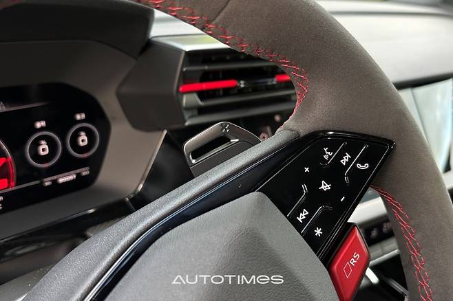 실내는 레드 디나미카 사이드 트림, 레드 에어벤트 스트립, 카본 아틀라스 인레이의 RS 디자인 패키지로 강렬하고 세련된 분위기를 연출했다. 검빨 조합을 통해 젊고 역동적인 이미지를 배가시키며 멋을 더한다. 그 중에서도 핵심은 스티어링 휠이다. 더블 D컷 형태이며 알칸타라로 감싸 손에 쥐는 맛이 좋다. 체커기와 RS 버튼을 마련해 즉각적으로 차의 성격도 바꿀 수 있다.