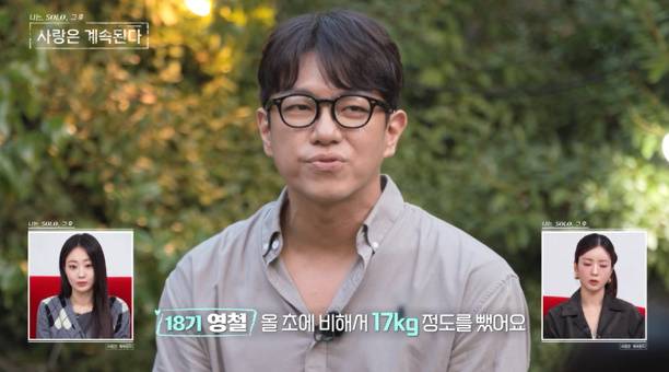 86년생으로 AI 데이터센터 개발 시행 회사에 근무 중인 18기 영철은 "외형은 세보이지만 중고마켓 온도 45.1도에 빛나는 따뜻함과 친절함을 가지고 있다"며 "올 초에 비해서 17kg 정도 뺐다"고 '다이어트로 긁은 복권' 면모를 과시했다.