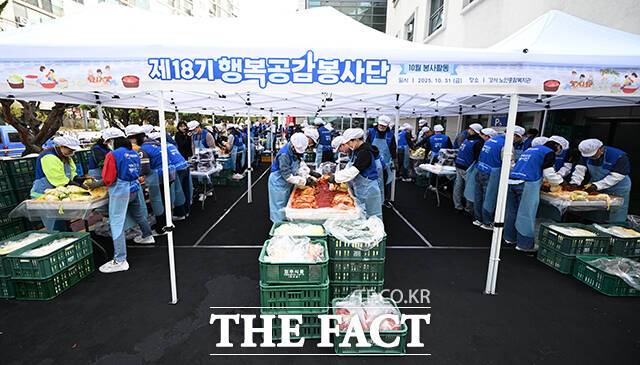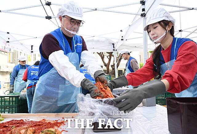 취약 계층 위해 '김장김치 나눔' 봉사하는 행복공감봉사단 [TF사진관]
