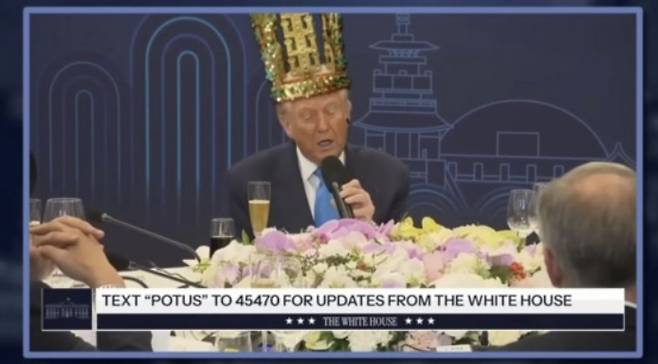 앞서 트럼프 대통령은 29일 국립경주박물관에서 열린 이 대통령과의 한미 정상회담에서 신라 천마총 금관을 본뜬 특별 제작 모형을 선물로 받았다.