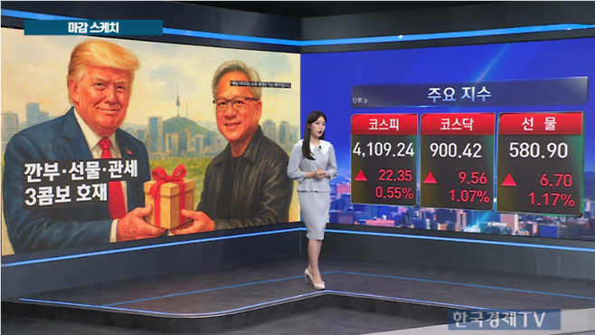- 현대차는 관세 타결·젠슨 황 회동 겹호재에 9.43% 급등세로 장 마무리함.