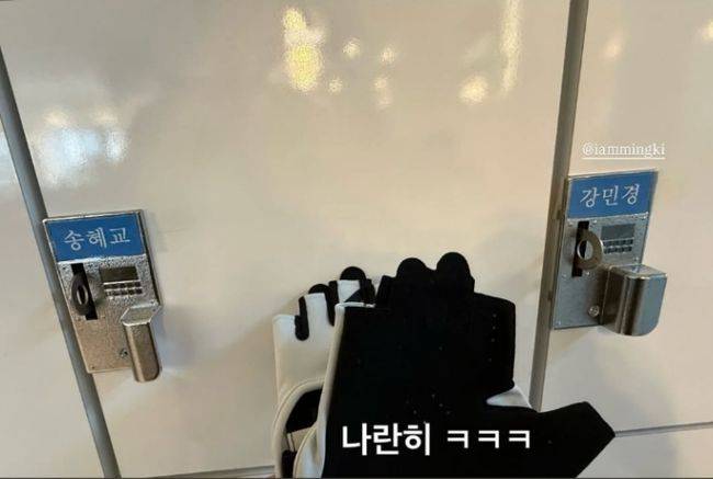 공개된 사진에는 송혜교와 강민경의 이름이 나란히 적혀 있는 사물함과 운동용 장갑 한쌍이 담겨 있었다.