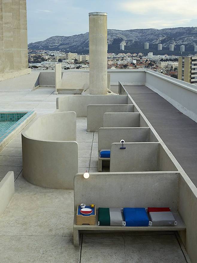그런데 최근 전해온 놀라운 소식은 이 건물 안의 실제 아파트 한 세대가 최근 매물로 나왔다는 것. 르 코르뷔지에의 설계가 그대로 남아 있는 아파트의 가격은 약 45만에서 50만 유로, 한화로 약 8억 원대라고 합니다. 이 아파트에는 샬롯페리앙이 디자인한 주방과, 장 프루베의 금속 계단 등 르 코르뷔지에의 동료들이 함께 만든 디테일이 그대로 살아 있어요. 물론 세월의 손길은 있겠지만, 그가 고안한 ‘모듈러 비례’와 색채 계획은 여전히 우아하게 남아있습니다. 현재 유니테 다비타시옹은 일부는 호텔과 게스트룸으로, 또 일부는 실제 주민들이 거주하는 아파트로 운영되고 있습니다. 2025년 지금까지도 ‘살 수 있는’ 르 코르뷔지에의 건축이라는 점에서 건축 애호가들에게는 그야말로 ‘꿈의 집’이라 불리기도 하죠. 살 수 있는 건축, 살아 있는 유산, 이보다 더 낭만적인 주거의 형태가 있을까요. 주소 : 280 Boulevard Michelet, Marseille, France.
