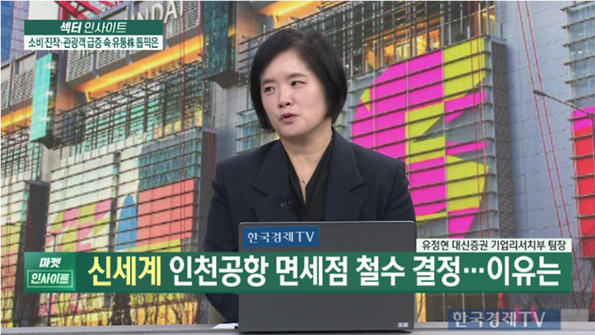 유정현 대신증권 기업리서치부 팀장은 31일 한국경제TV에 출연해 호텔신라와 신세계의 인천국제공항 면세점 철수 결정은 남은 7년 간의 적자를 막기 위한 '수익성 중심 전략'이라는 의견을 내놨다.