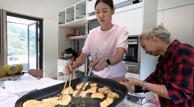 이후 한혜진은 가족들과 함께 장을 보고 전을 부치며 명절 분위기를 물씬 풍겼다.