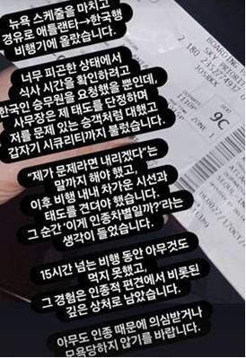그는 당시 "비행 내내 차가운 시선과 태도를 견뎌야 했다. 그 순간 '이게 인종차별일까?'라는 생각이 들었다", "15시간 넘는 비행 동안 아무것도 먹지 못했고, 그 경험은 인종적 편견에서 비롯된 깊은 상처로 남았다"고 밝혀 화제를 모았다.