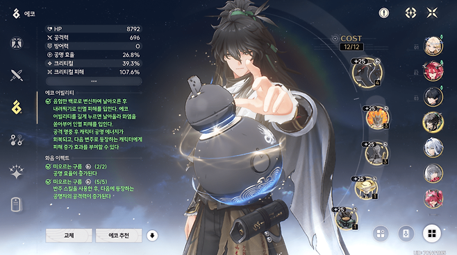 에코 선택지는 크게 2가지다. 단순 서브 딜러라면 떠오르는 구름, 3돌파 이상이라면 만물의 숨결에 비롯된 울림이다.