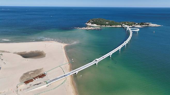 섬을 연결하는 수백 미터 길이의 다리가 2025년 12월 준공을 목표로 공사 중이다. 관광객 접근성을 높이기 위해 세워졌지만, 콘크리트 기둥과 철제 난간으로 이루어진 거대한 구조물이 섬의 규모를 압도하며 자연경관을 훼손하고 있다.