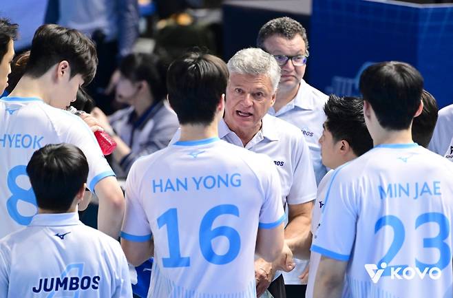 헤난 달 조토 감독이 이끄는 대한항공은 31일 인천 계양체육관에서 열린 진에어 2025-2026 V-리그 남자부 1라운드 우리카드와의 경기에서 세트스코어 3-1(23-25 27-25 28-26 31-29)로 승리하면서 시즌 성적 2승1패(승점 6점)를 만들었다.