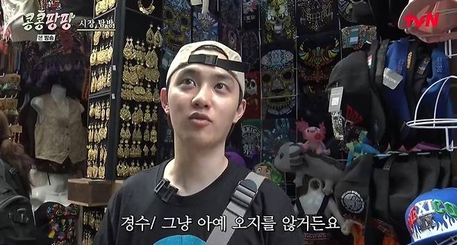 이날 멕시코 시장 탐방에 나선 이광수, 김우빈, 도경수. 세 사람은 팀복을 맞춰 입은 후 모자도 고르기 시작했고, 이광수는 "레슬링이 점점 더 좋아지는데?"라며 레슬링을 향한 사랑을 드러냈다.